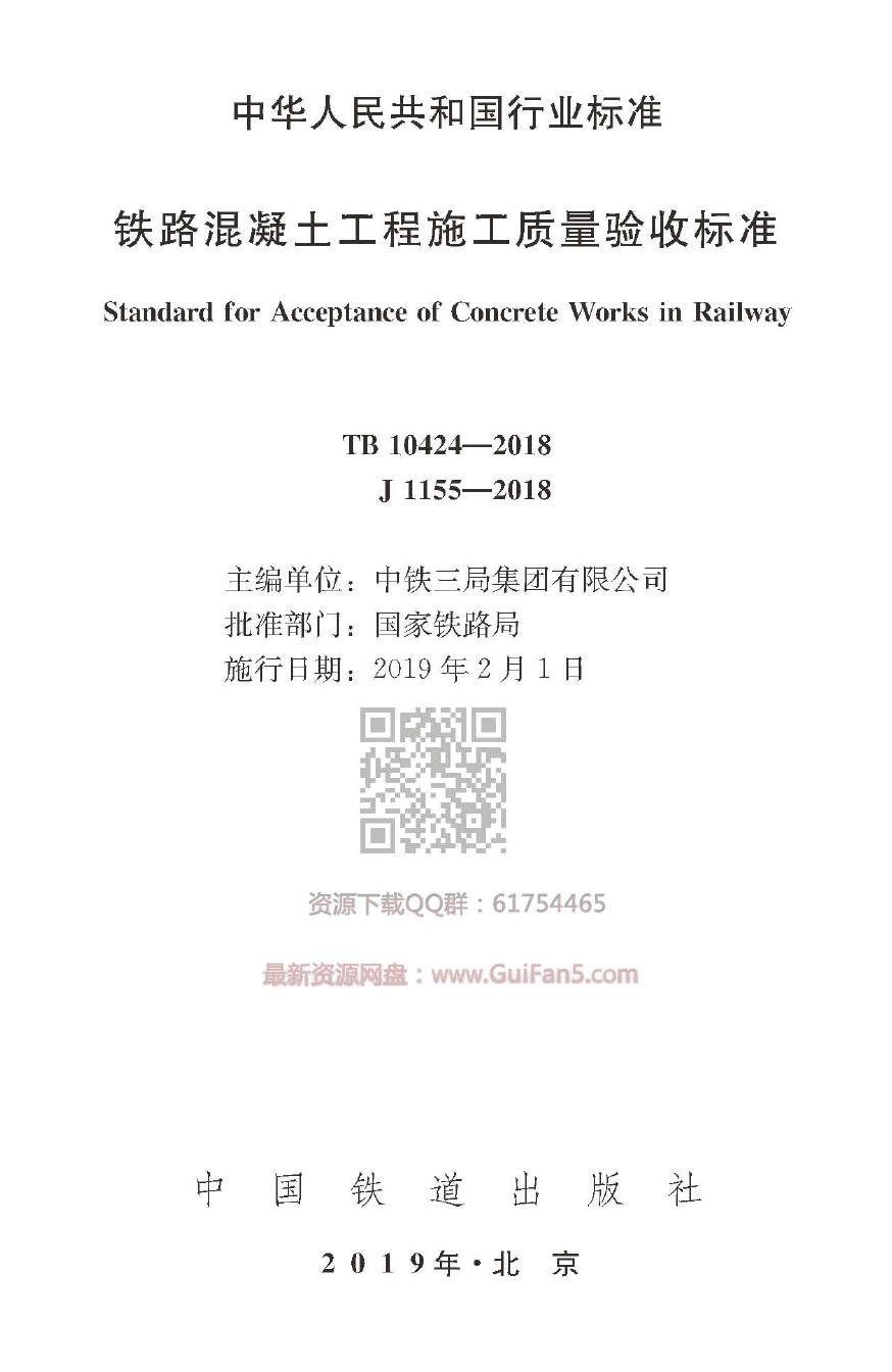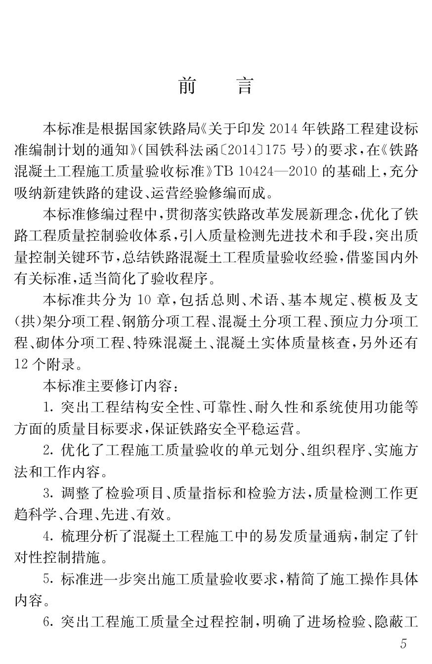 正版 TB 10424-2018 鐵路混凝土工程施工質(zhì)量驗(yàn)收標(biāo)準(zhǔn)(高清版)
